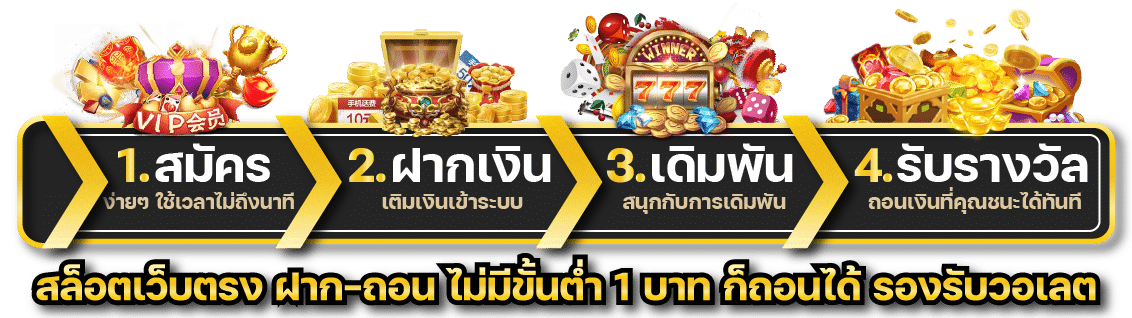 ตอบ : - กรอกข้อมูลส่วนตัวในแบบฟอร์มสมัครสมาชิก ยืนยันเบอร์โทรศัพท์ เพิ่มบัญชีธนาคาร รอรับยูสเซอร์และรหัสผ่าน เริ่มเล่นได้ทันที